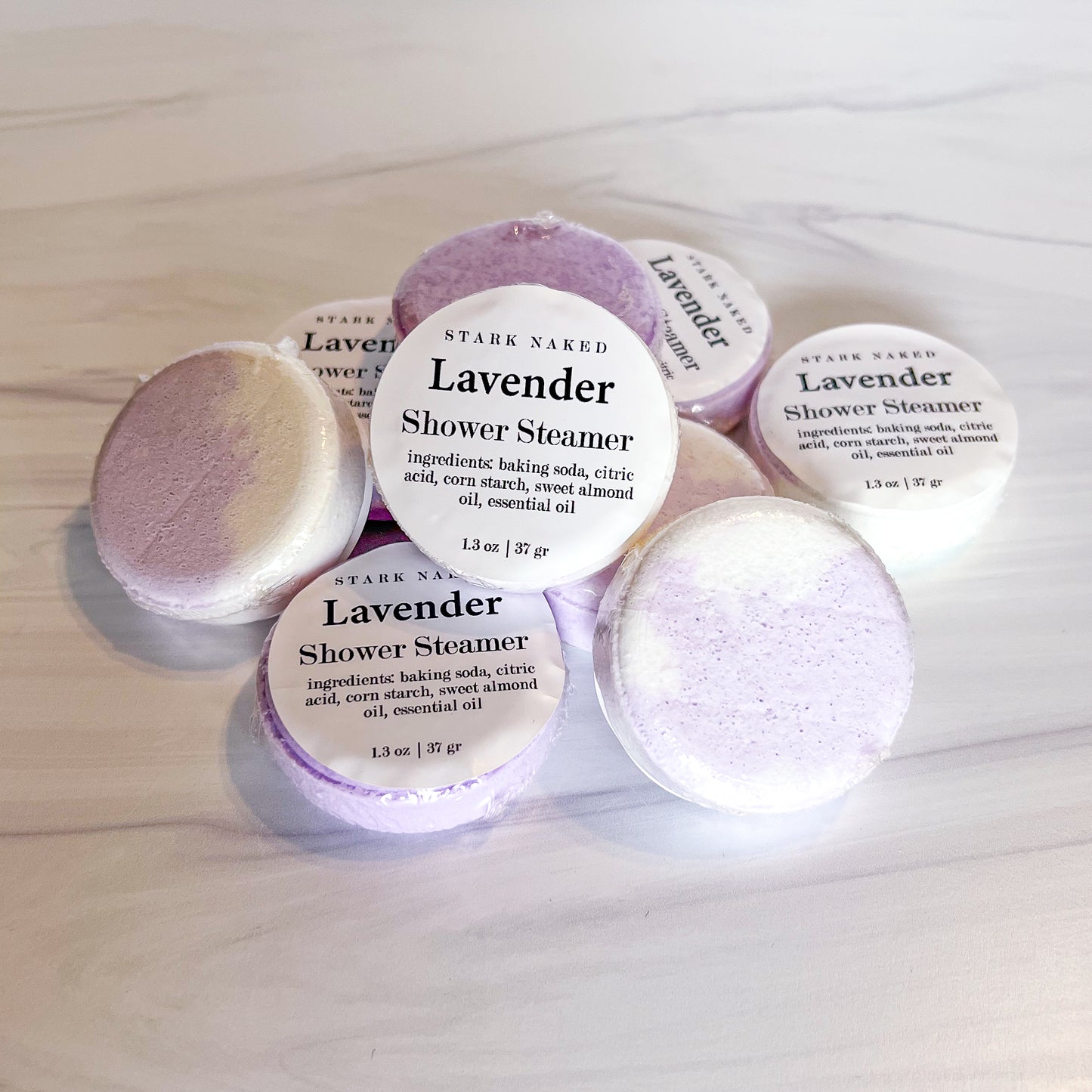 These Lavender Shower Steamers will elevate your shower experience and transform an everyday shower into the ultimate relaxing experience. The steamer tablets are activated by your warm shower steam and are very easy to use... just place on your shower floor right before stepping in the shower, and continue running warm shower water while you shower until completely dissolved. Formulated with lavender essential oil, these steamer tablets offer a wonderful sensory experience. When you're feeling stressed and rundown, turn your shower into a spa-like sauna so you can feel calm, rejuvenated, and ready to relax for the evening.